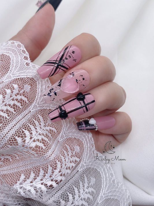 Gothic Black Barbie Pink Heart Cool Girl Press On Nails