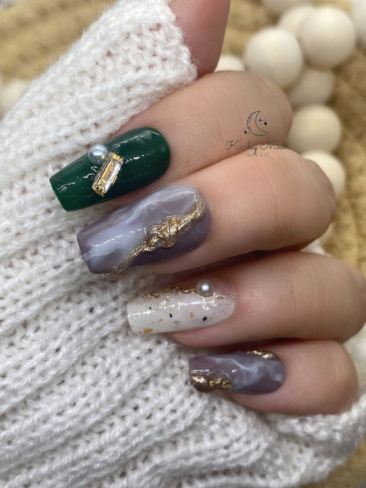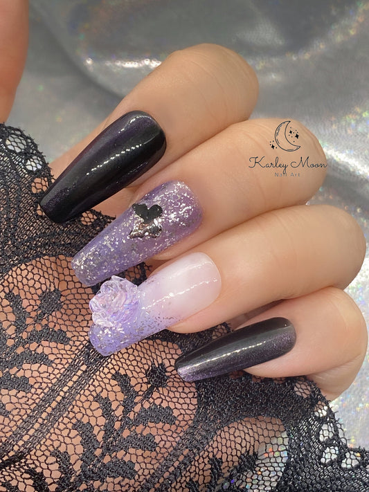 Gothic Black and Purple Galaxy Glitter Press On Nails