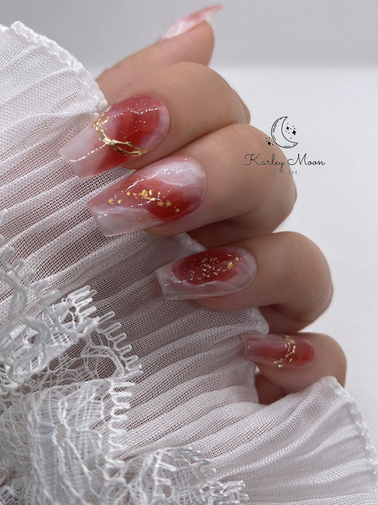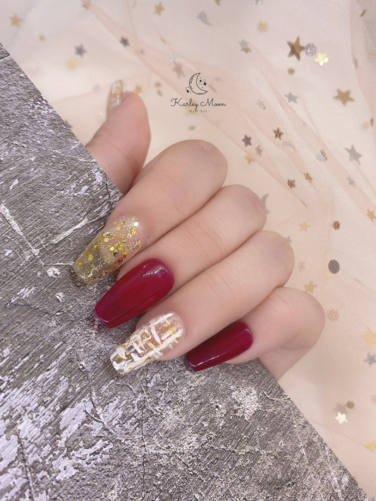 Elegant Watercolor Red Golden Glitter Press On Nails Watercolor Nails