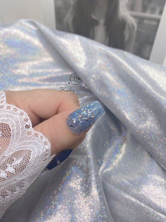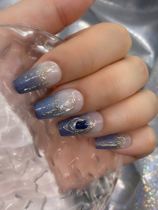 Summer Nails Watercolor Blue Galaxy Glitter Stone Press On Nails