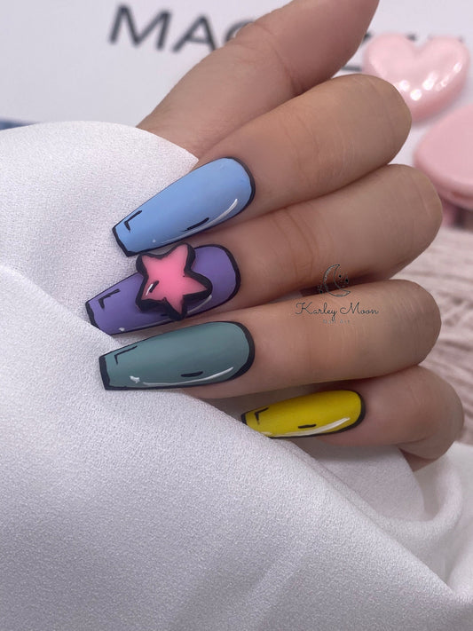 Summer Rainbow Kawaii 3D Hand Painted Comics Style Press On Nails