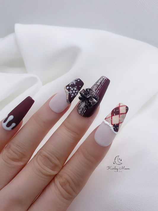 Holiday Christmas Snow Red Glitter Winter Press On Nails