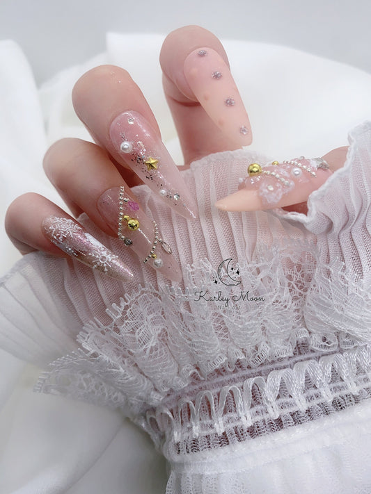 Elegant Christmas Snowflake Pink Glitter Winter Press On Nails