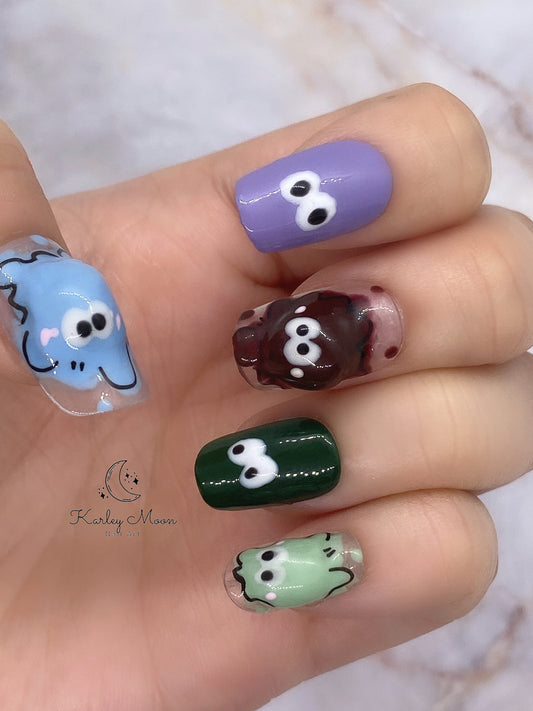 Cute Manga Design 3D Eyes Colorful Press On Nails