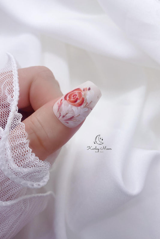Elegant Fancy Hand Painted Rose Flower Press On Nails