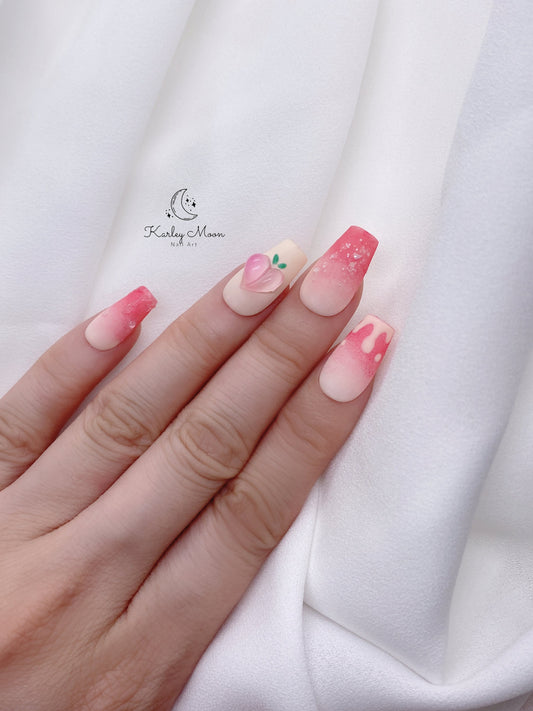 Kawaii Juicy Pink 3D Peach Summer Press On Nails
