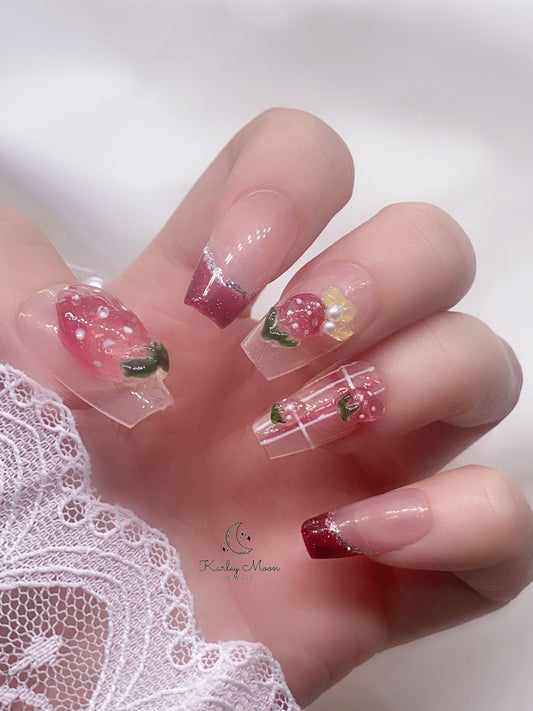 Kawaii 3D Strawberry Nude Pink Summer Press On Nails