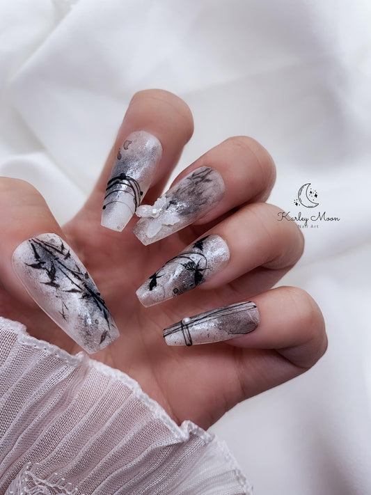 Elegant Hand Painted Bamboo Butterfly Press On Nails