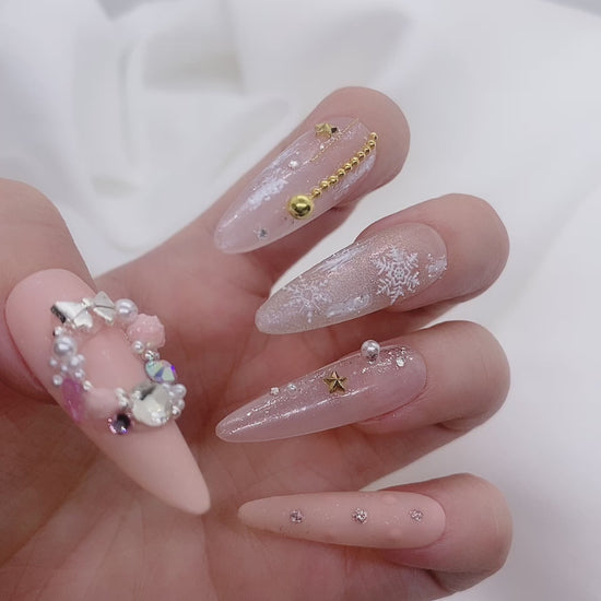 Elegant Christmas Snowflake Pink Glitter Winter Press On Nails