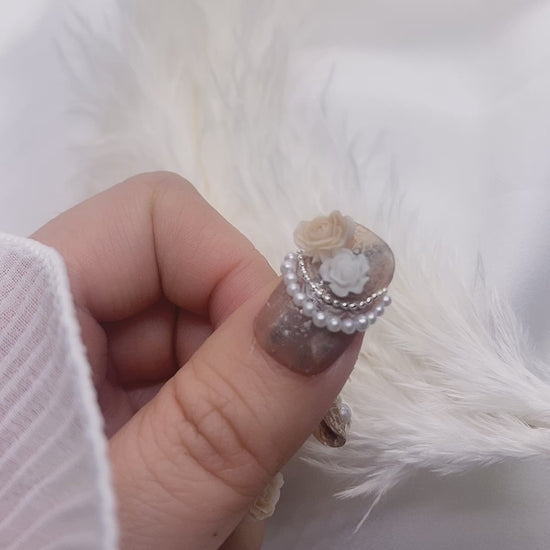 Classic Golden Brown Flower Pearl Vintage Press On Nails