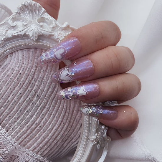 Cute Purple Blue Glitter Heart Press On Nails