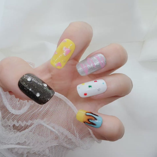 2. Due to the nature of handmade press-on nails, designs/patterns may have slight variations and handicraft flaws. If you order a nail shape that different from the picture, we may need to add/remove decorations on the nails in order to compatible the original design. Nevertheless, the overall design/style is the same.