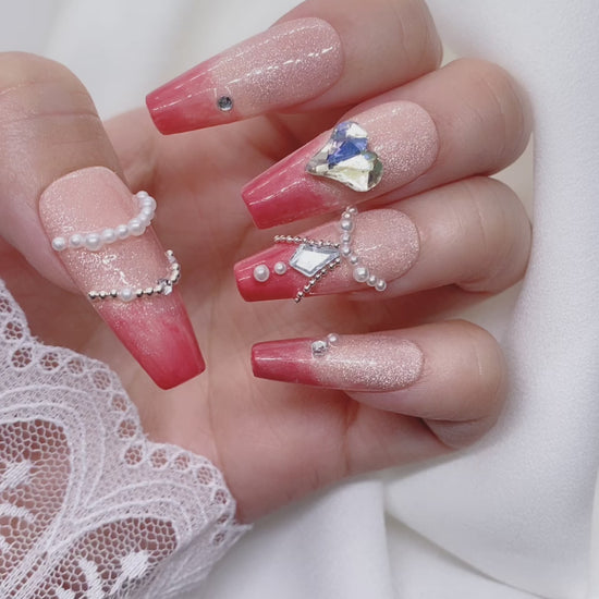 Fancy Glitter Cat Eye Pink Shiny Luxury Press On Nails