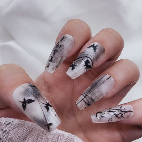 Elegant Hand Painted Bamboo Butterfly Press On Nails