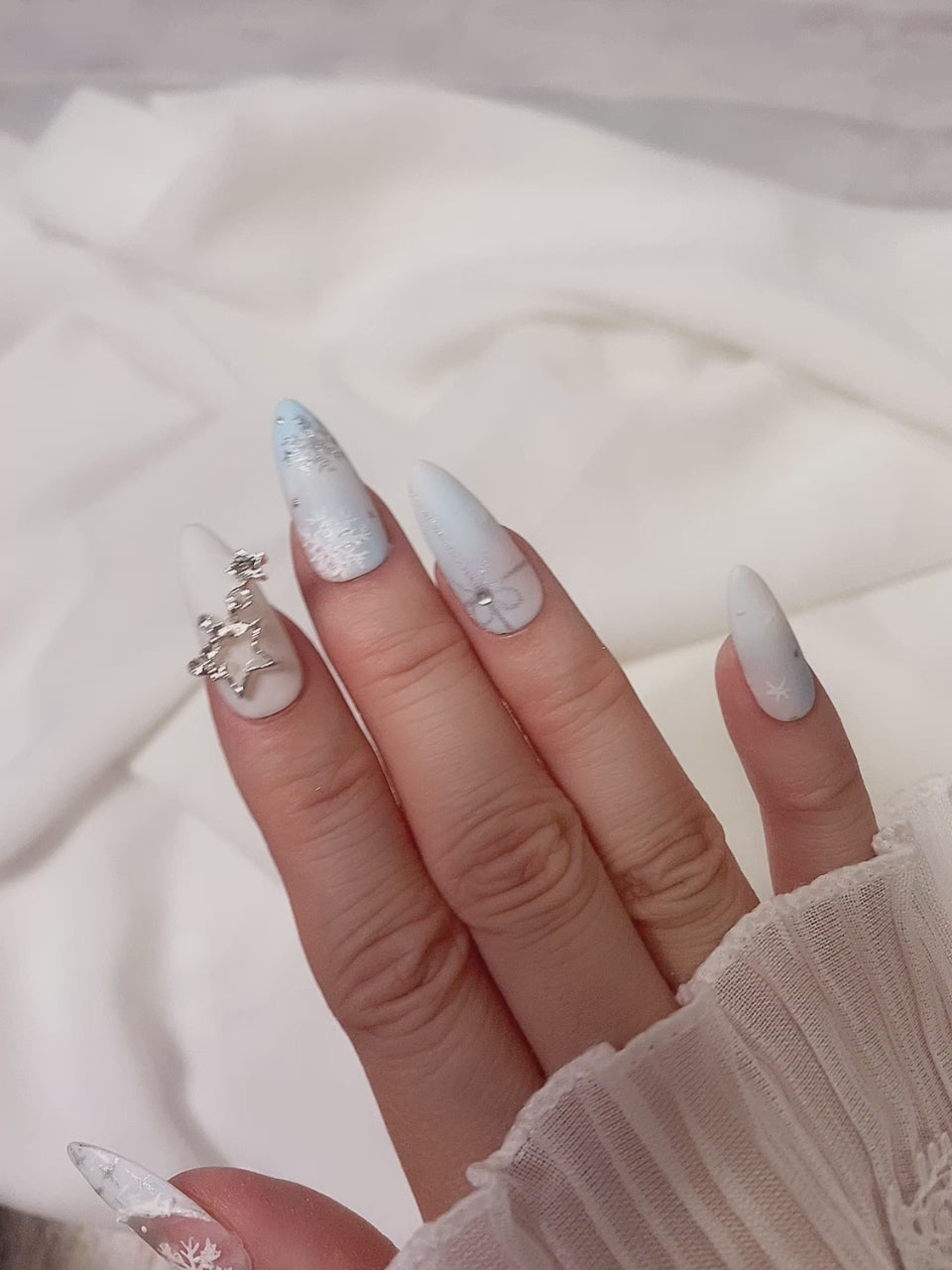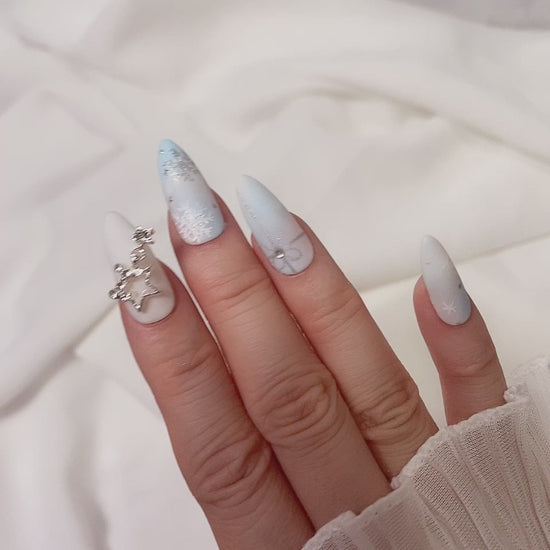 Holiday Christmas Light Blue Snow Glitter Winter Press On Nails