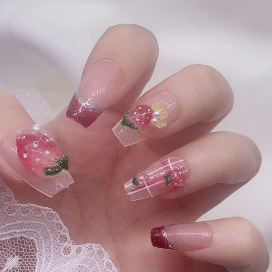 Kawaii 3D Strawberry Nude Pink Summer Press On Nails