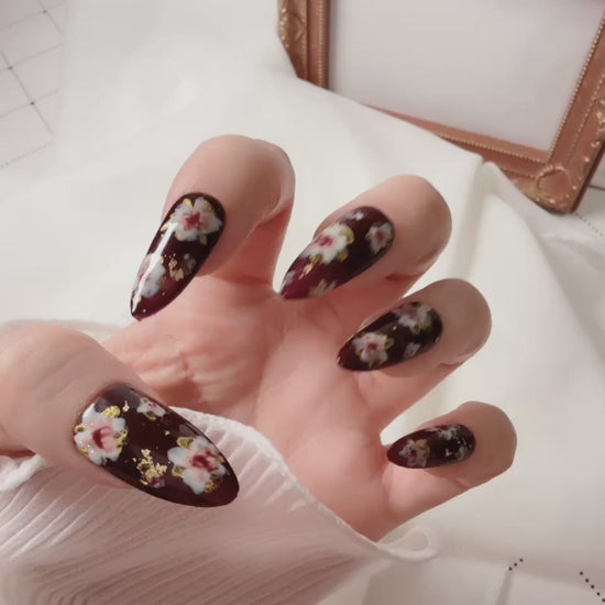 Vintage Classic Golden Flowers Press On Nails